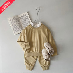 थोक बुटीक कपड़े शरद ऋतु और सर्दियों के पल्लोवर स्वेटशर्ट और पैंट ठोस रंग आदमी के कपड़े सेट
