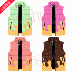 थोक स्लीवलेस बनियान स्टैंड कॉलर जिपर जेब जलरोधी विंडप्रूफ बर्फ क्रीम ड्रिप पुफर बनियान