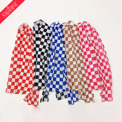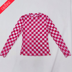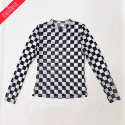 Wholesale Trendy Black White Checkered Long Sleeve Mesh Top Women Sexy Long Sleeve Top